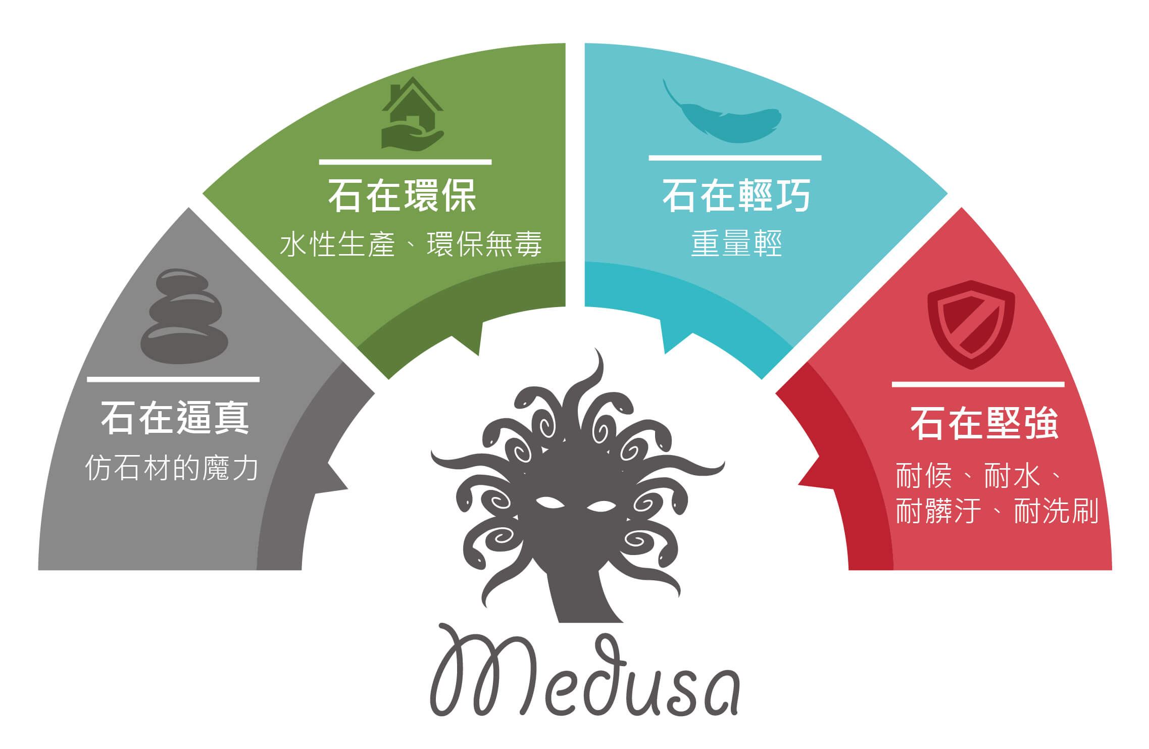 自古以來,美杜莎的傳說便以其目光所及之處,萬物化為栩栩如生的石像而引人入勝。這份神奇的魔力,正是美杜莎塗料品牌精神的寫照。我們將這份傳說中的力量,傾注於水性塗料的研發與應用,讓凡目光所及的牆面、立柱、甚至各種材質,都能瞬間幻化為仿真石材與仿花崗岩的細膩質感。