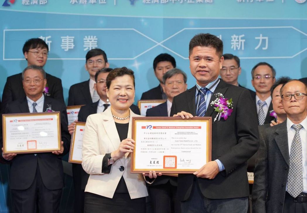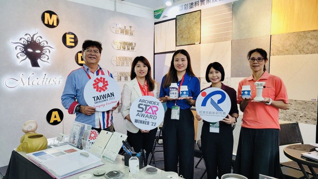 我們所研發產品均採環保無毒材料製造,榮獲「經濟部中小企業創新研究獎」及「台灣精品獎」的「美杜莎Medusa無機愛防水液態添加劑」是華彩塗料代表作之一,不僅具有卓越的防水效果,更擁有省時省力的特點,為使用者帶來極大便利性。該款添加劑配方完全不含有害物質,符合環保標準且對人體及環境無害。
