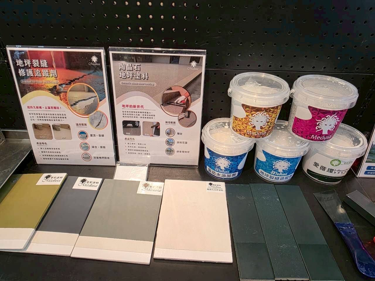 在地坪系統方面,華彩推出的陶晶石地坪塗料,提供取代傳統 Epoxy 地坪的全新解方。陶晶石地坪以無機礦物與陶晶結構為核心,具備高耐磨、高硬度、高密度的表現,同時避免 Epoxy 在高溫、重壓或長期使用下,易龜裂、泛黃、起皮的問題。