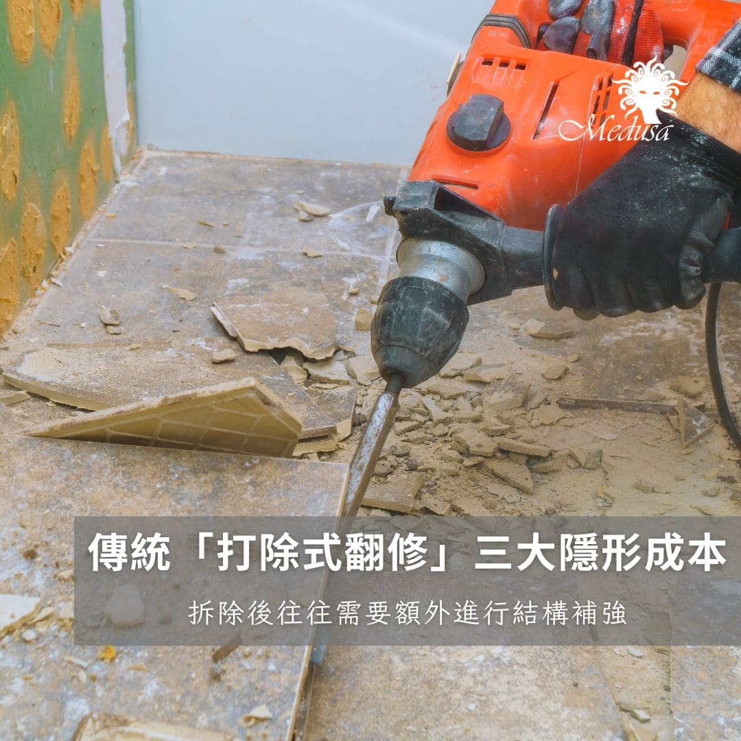 若仍採用傳統全面打除的翻修方式,土方與廢棄物只會持續放大,導致預算失控與工期延誤反覆發生。