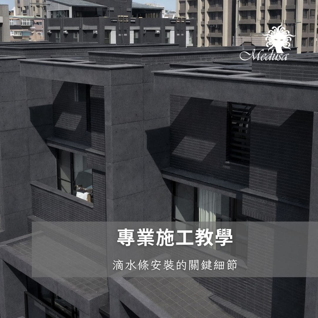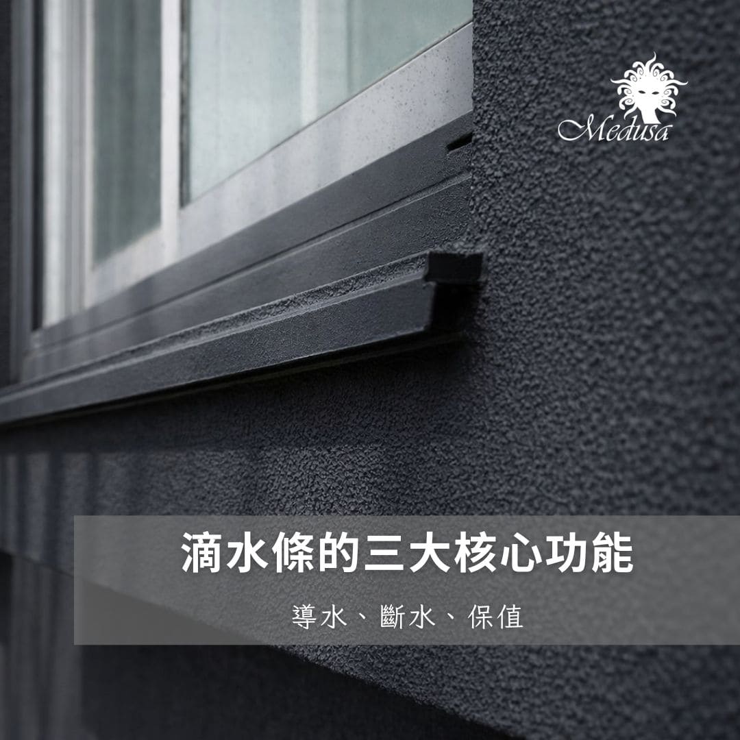 台灣許多早期建築(30-40年前)並無滴水設計的概念,僅僅是在窗台抹上一層水泥。在拉皮過程中,加入鋁合金或高密度 PVC 滴水條,能補足原始設計的不足。