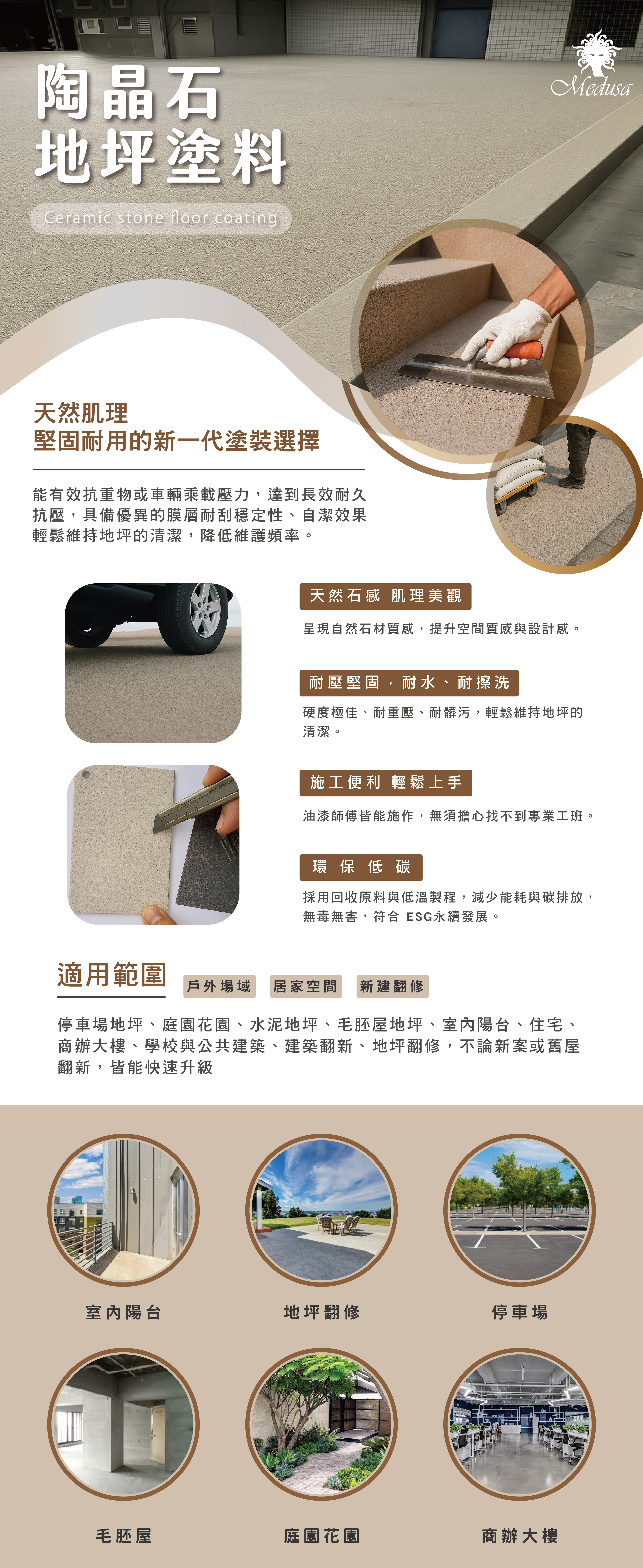 居家空間:水泥地坪、毛胚屋地坪、室內陽台、住宅、商辦大樓、學校與公共建築